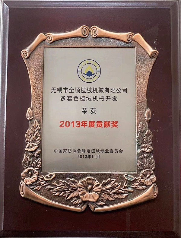 多套色植绒机2013年度贡献奖